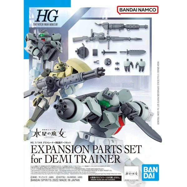 This expansion parts set allows you to customize the HG Demi Trainer from “Mobile Suit Gundam: The Witch of Mercury”! The set includes various weapons, from large guns to a close-contact combat knife; the large armaments can also be mounted to the Demi Trainer’s arms. Flat hand parts are also included. Order yours today!